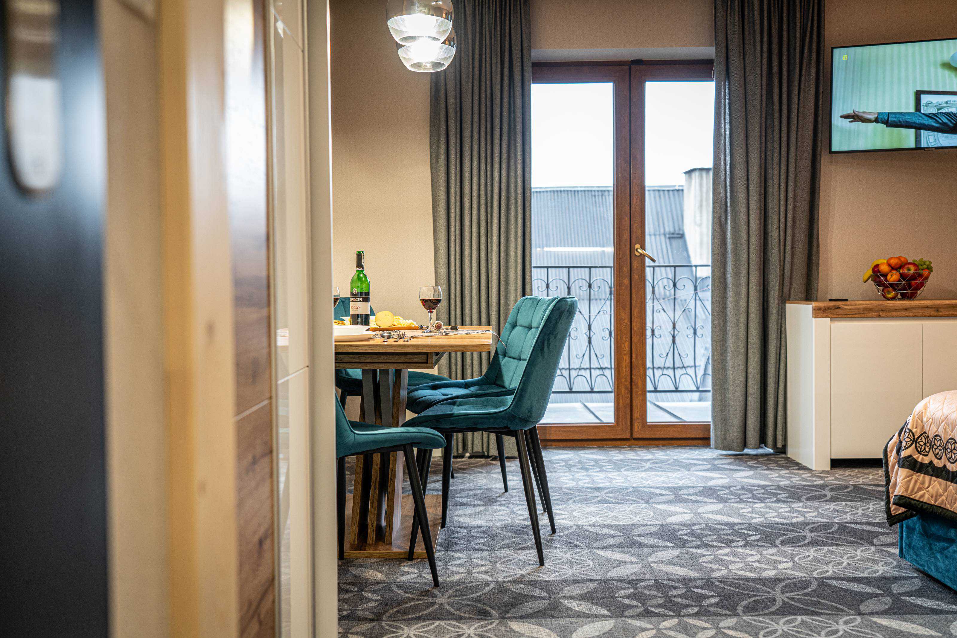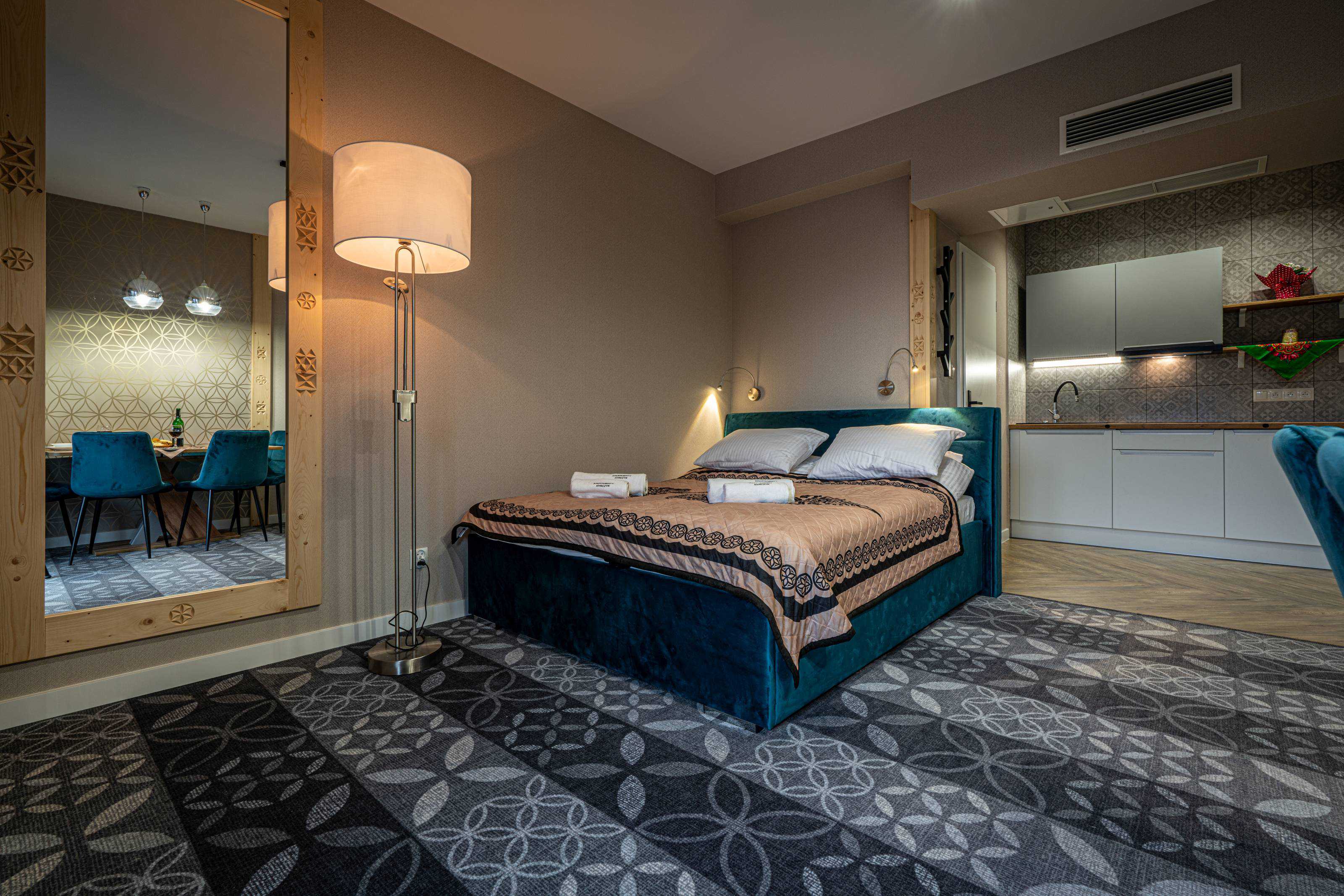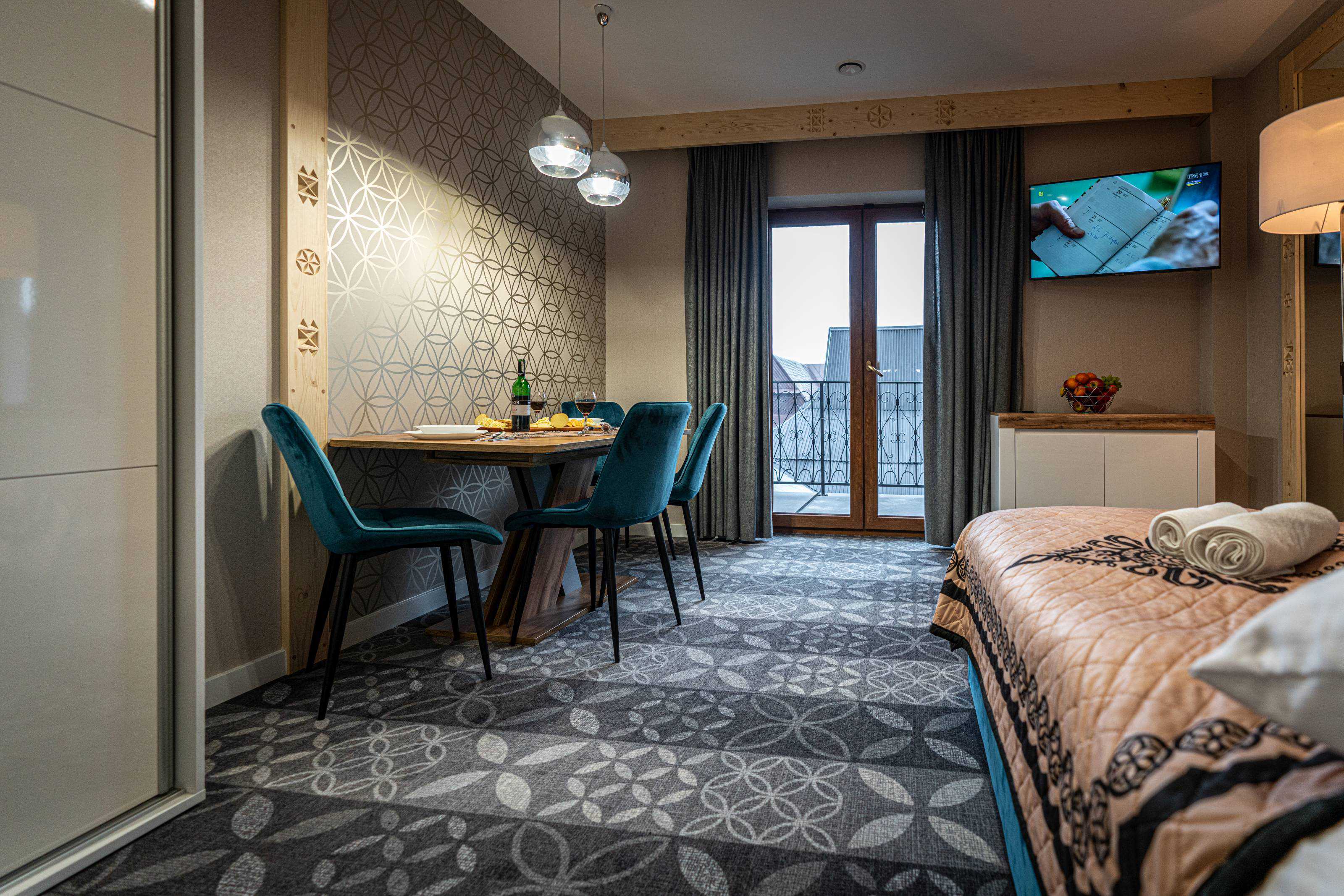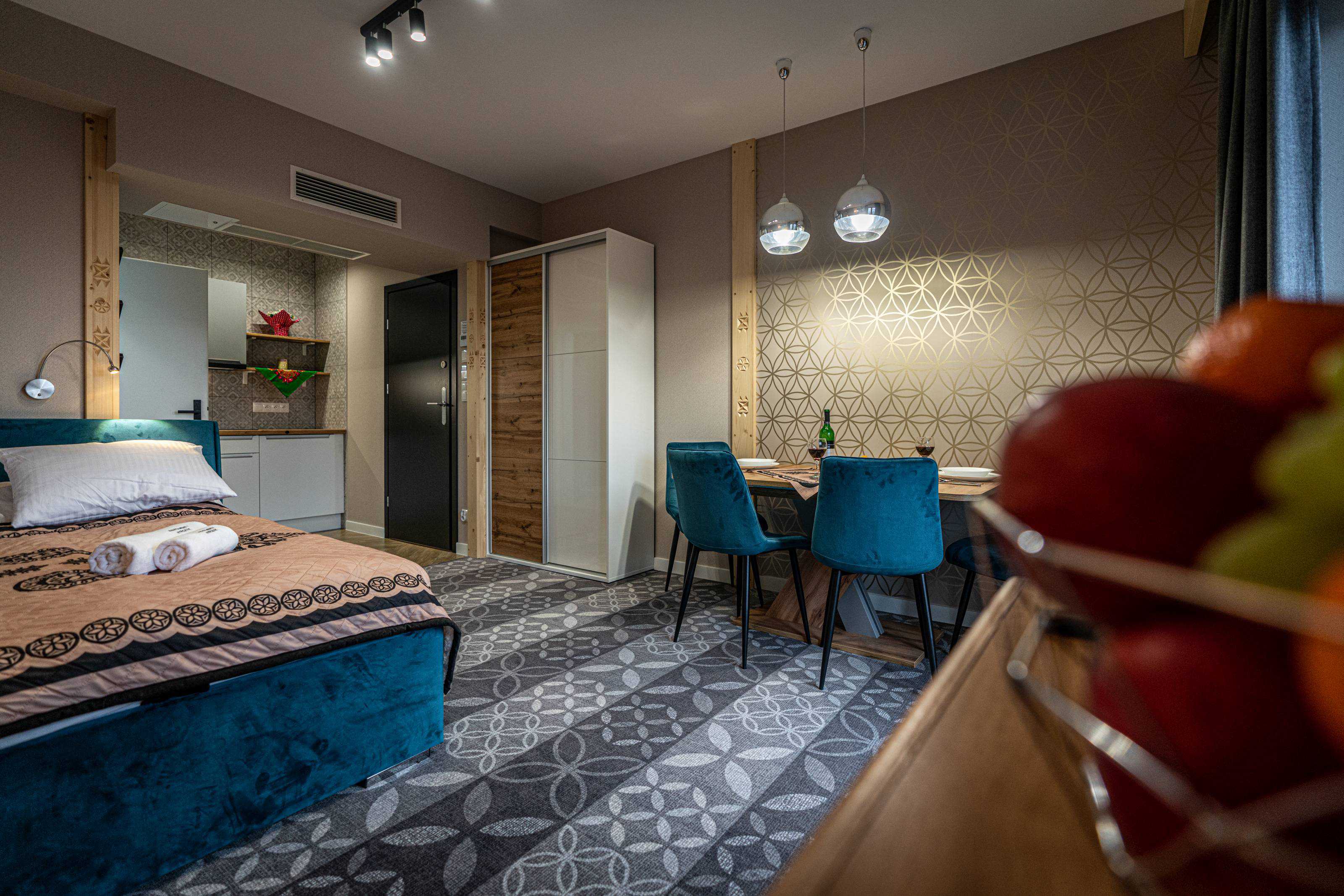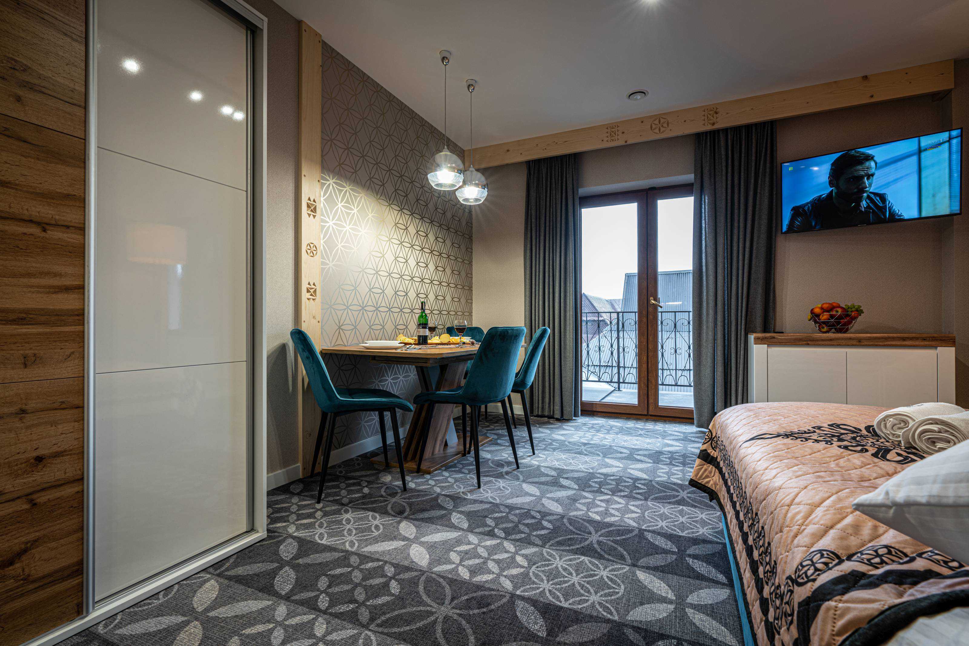 Luksusowy apartament w centrum miejscowości Ząb w pobliżu Zakopanego z widokiem na góry. Apartament posiada balkon z stolikiem i 2 krzesłami. Apartament wyposażony jest w elektryczny system ogrzewania oraz klimatyzację.